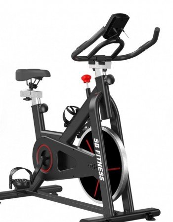 Ποδήλατο Γυμναστικής SB FITNESS με οθόνη και μετρητή καρδιακών παλμών σε Μαύρο Κόκκινο βάρος τροχού 6kg